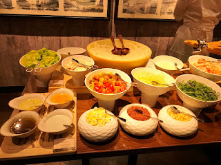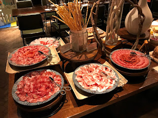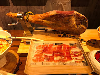 這裡最特別莫過於是有原隻西班牙火腿供應,還有用上原個芝士做出的凱撒沙律,沙律吧的廚師會為客人在巴馬臣芝士輪上即場攪拌凱撒沙律,然後自己再配搭鵪鶉蛋、西班牙火腿及白鯷魚等配料。個人推薦:凱撒沙律及風乾火腿)