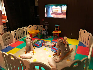 最後,亦都是最驚喜的是,這裡竟然新增設了一個兒童玩樂天地,而且亦有職員幫忙看顧,讓家長們享受美食的同時,亦不忘小孩的需要!(真心讚!真的不可能困住小孩4小時於一個沒有耍樂的地方,大家懂的 XD)。另外,坦白說,兒童玩樂天地是屬於小小的類型,不過內裡玩樂設施也足夠讓Alfred樂翻天了,例如:有Lego系列的Duplo、有小廚房、有搖搖馬及朗庭酒店自家製的書藉。個人覺得已夠Alfred玩了!