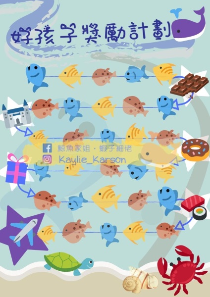 當鯨姐家姐同蝦子細佬做到鯨媽的要求,我便在這個「好孩子獎勵計劃」圖表蓋印章,每當累積5個印章,就會有一個小獎勵!!