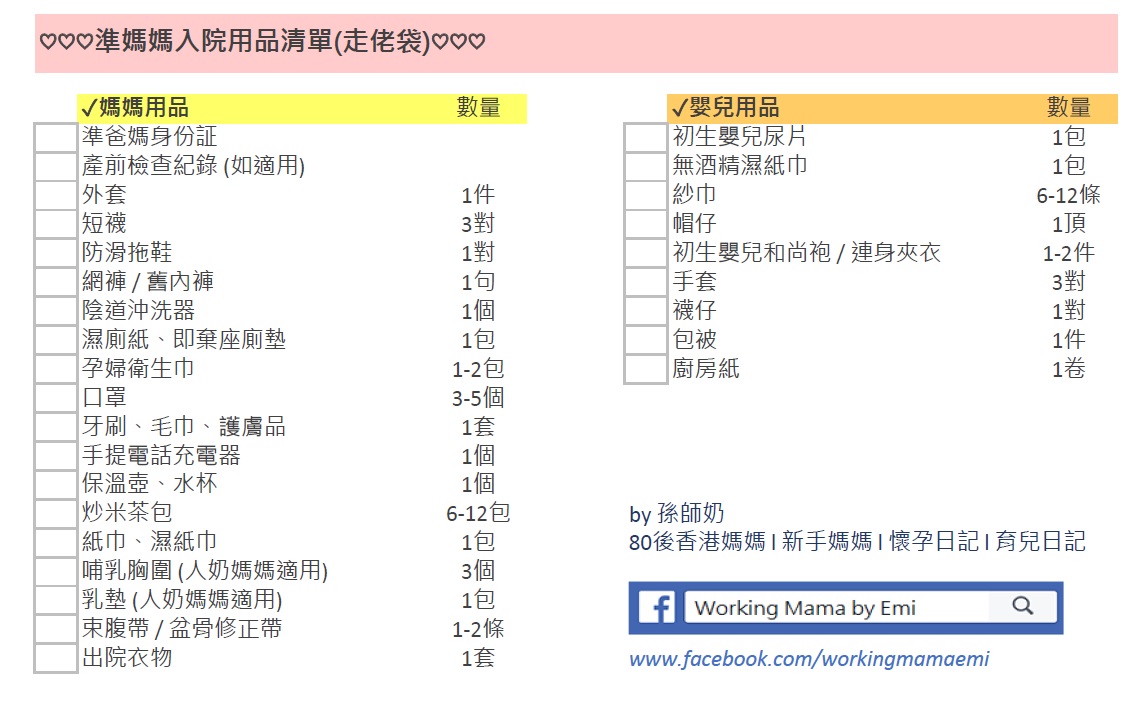 踏入懷孕36-37週左右,產檢的時候醫護人員都會提各位準靚媽預備「走佬袋」,以便隨時入院生產。當時孫師奶上網搜尋,綜合了幾位靚媽的意見,買了一大堆東西,最後發現有些東西根本用不著,想趁還有記憶的時候跟各位準靚媽分享一下。