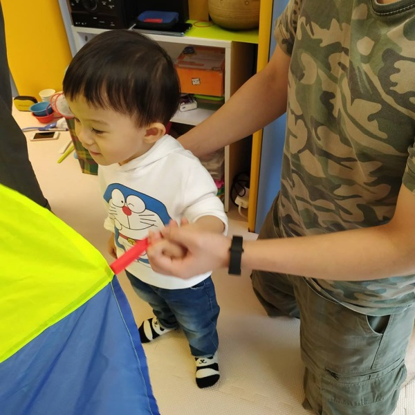 我哋依牌同佢去Playgroup玩的時候,筋肉寶寶係完全不受控同唔聽指令,拉佢埋去睇老師做咩,佢就會又喊又走!