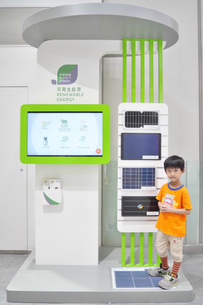 以「可再生能源」為主題,展示不同種類的可再生能源,及其優點與限制,同時設有互動遊戲讓參觀者了解更多太陽能發電系統的基本資訊。