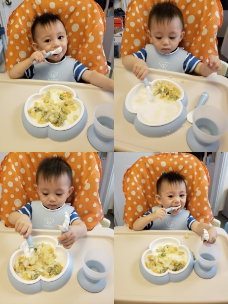 一歲既 #綿綿, 開始要比佢試下自已用手拎住餐具食飯喇~ 其實小朋友由加固開始,真係有好多學問, 餐具食具都唔例外~