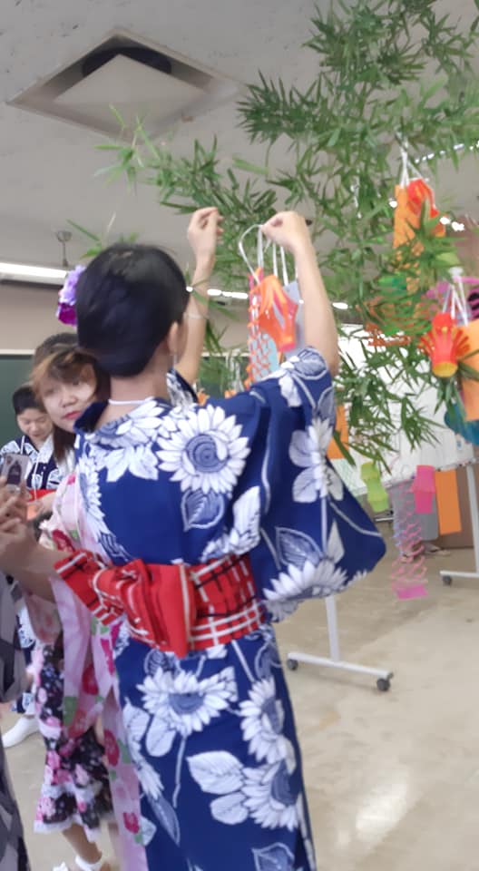 今日日本語教室舉辦左7夕祭り, 所有老師同不同國藉GEI同學仔都有出席, 大部份老師都係義工LA LAI ,佢地好有心,帶曬佢地D 日本浴衣返來, 免費借比D 同學仔著,