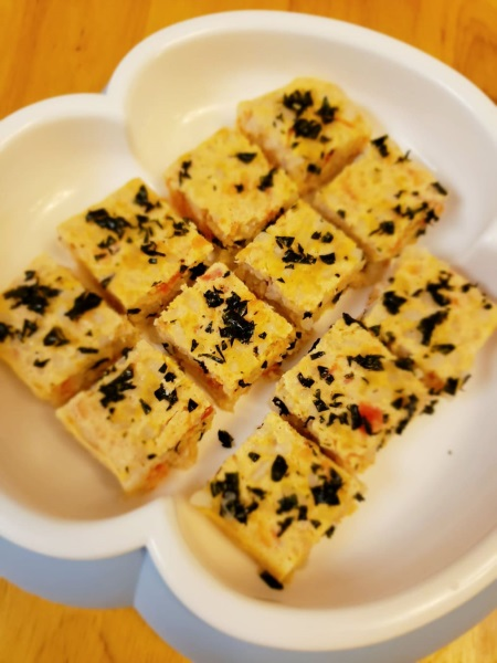 【嬰兒食譜 紫菜蕃茄肉碎蒸蛋方塊飯】
