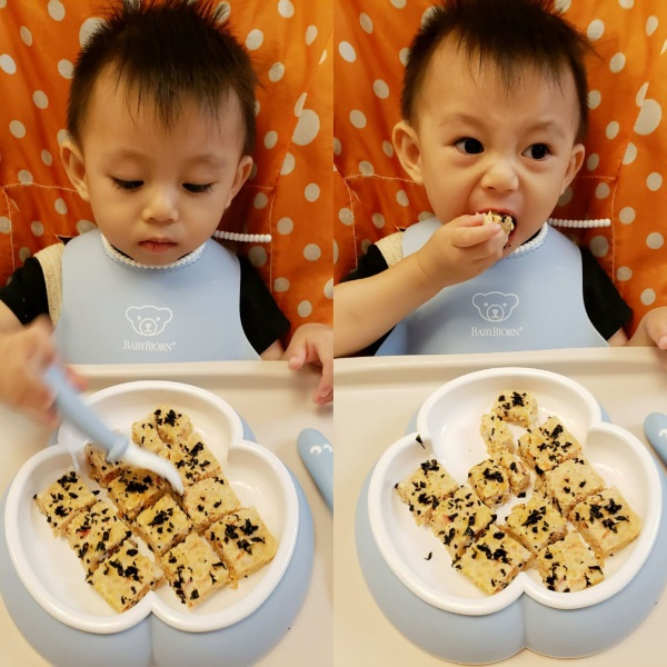 早前綿綿連續幾日都唔肯食魚及肉,真係有小小擔心佢唔夠營養。因為我係烹飪初哥,所以上網不段搵唔同食譜參考研究,再因應自已方法及食材改良去煮新菜式,我將食物改變小小形狀,比佢手仔揸住來食,可能綿綿感到好新奇,好有興趣,見佢食晒,我都好意外呀~