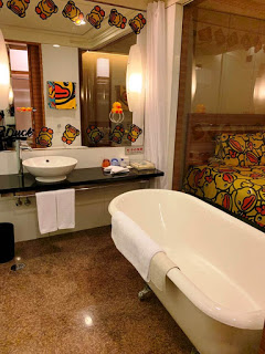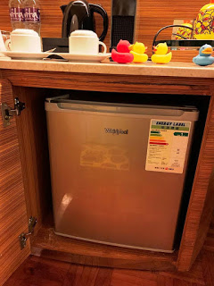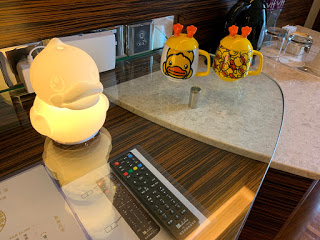 我們當日所入住的房間是高層的豪華海景客房,房間內的開放式浴室看上去令房間更為寛闊。而且在房間的每個角落,無論是床上用品、洗手間、梳化軟墊等,均可看見既可愛又趣緻的B.Duck蹤影,Alfred看到後,顯得非常開心,絕對有「被可愛鴨子包圍」的感覺XD。另外,房內基本設施齊備(包括: 沐浴用品、牙刷、梳、紙拖鞋等衛生用品、夾萬及咖啡/茶沖調設備等)。