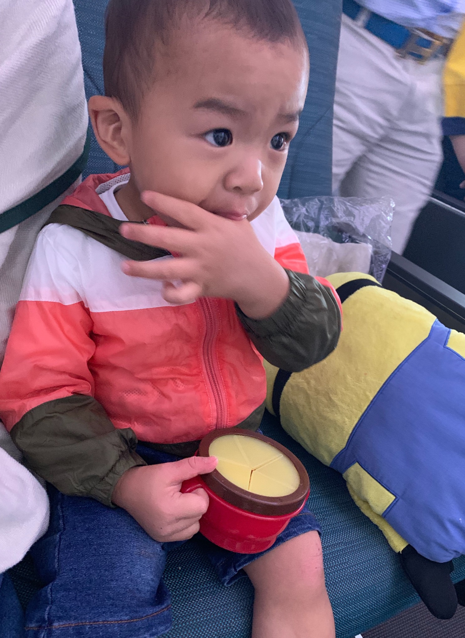 7)如果小孩怕悶又為食的話,可以帶多點麵包、零食、果汁,令到他盡量不要離開座位,如果不行的話,可以在不影響到别人時走一走。