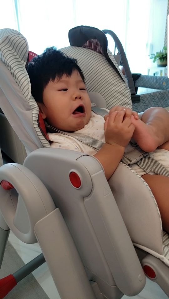 毛爺1坐上highchair已經喊定先,仲識講:飽飽飽,阿媽