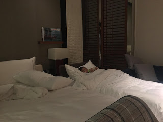 我地上去食野時,酒店已經幫我地加咗張細床喺大床隔離,米豬今晚就訓呢度喇!