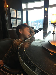 米豬上到嚟好開心呀,係咁痴住隻窗望中環,其實可以行出去㗎,出面係露台,但我地上去時好大風又有啲雨粉就冇同佢出去了