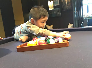食完野就過去玩吓,咁大個仔第一次督波波!睇爸爸表演清枱,但佢好似貓咁,係咁執啲波放入個袋度XD