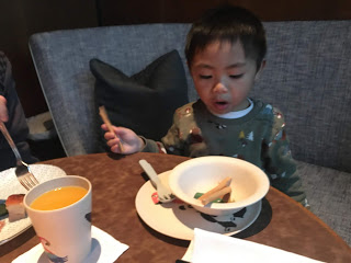 呢位小朋友繼續食mushroom⋯⋯炒mushroom同埋粟米脆片~staff very nice~幫我㷫熱咗半杯奶比佢送粟米片,唔駛用凍奶