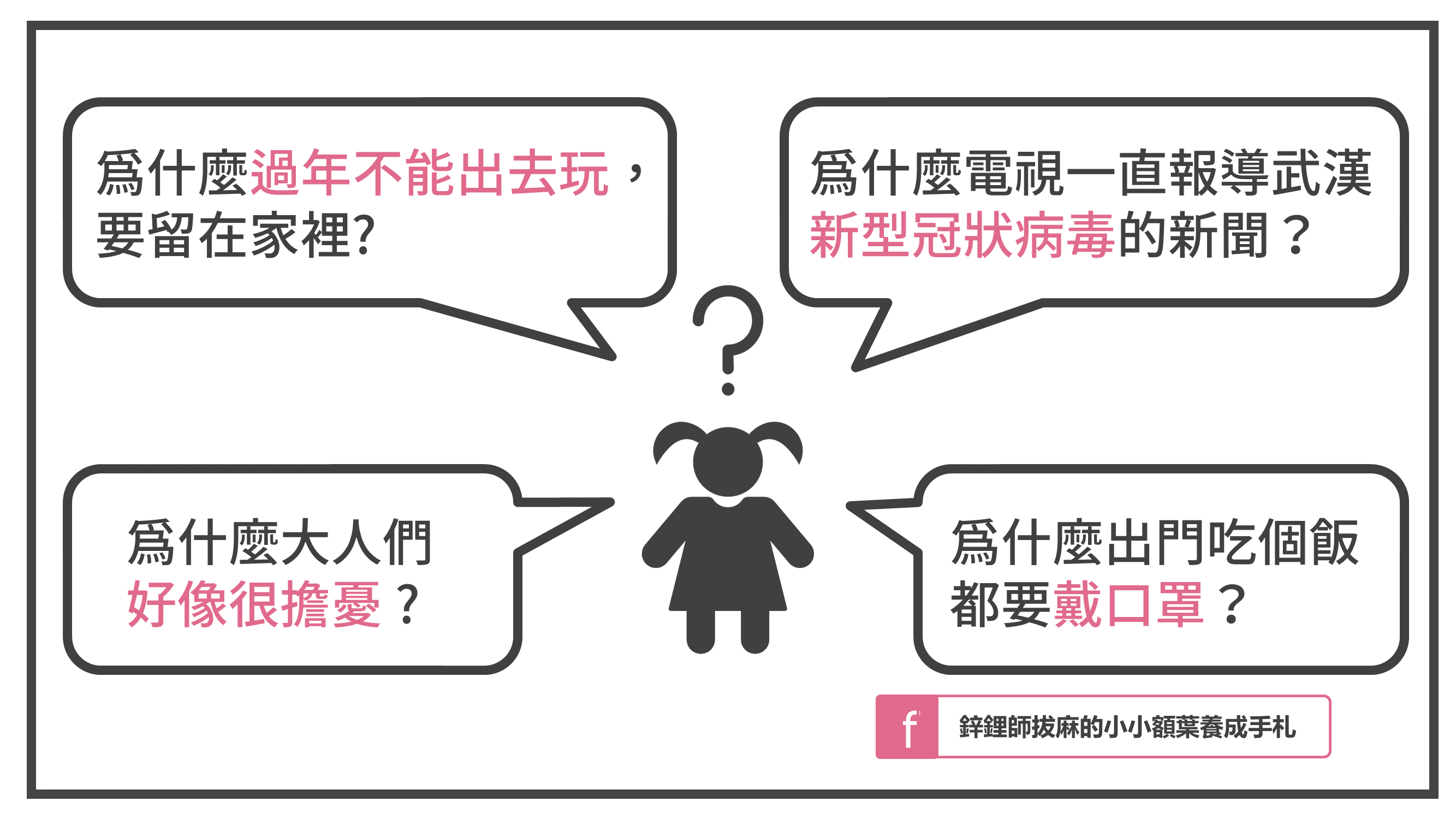 記著「PEACE」五部曲 和孩子一起共渡肺炎風暴! mami熱話 專欄分享 健康資訊 育兒專家 By 鋅鋰師拔麻 on 30 Jan 2020 我們是一對臨床心理學家夫妻Sam與Sasha,同時也是一位幼兒的父母。我們期待藉由分享教育/教養的生活甘苦、心理學/腦科學的相關文章,打破過往教養迷思,協助各位父母在育兒路上,多一分信心、少一分挫折。 武漢肺炎肆虐,小朋友的新年假期延長了,可能他們不太明白發生甚麼事,只知道暫時未能跟朋友仔一起上課。作為家長又可怎樣跟孩子共渡這次的疫症蔓延風波呢?由臨床心理學家夫婦「鋅鋰師拔麻」為大家解答! 延伸閱讀: 每天要定時消毒!入屋後要做足以下7件事! 口罩供不應求?搶購前必睇!全港各大商店口罩供貨情況 ============================== Intro Text: Mami Editorial Text & Photo:鋅鋰師拔麻 【誠徵Bloggers!】想分享你的懷孕及育兒日常?請將投稿連同約40字個人簡介和近照一張,電郵到:[email protected] 我們會幫你開設個人專欄,文章經編輯部潤飾後更有機會刊登在FB專頁,快點踴躍投稿吧! 【隨時隨地接收更多育兒教育資訊】📱 立即下載 MamiDaily 親子日常APP🤱🏻 追蹤我們的 Instagram: mamidaily.hk🔔 訂閱 MamiDaily 親子日常 Youtube頻道 標籤: 專欄分享mami熱話專家心理健康健康資訊武漢肺炎育兒專家