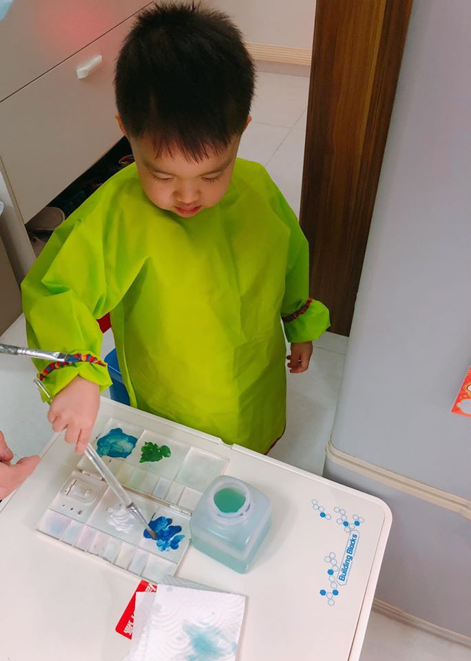 安妮媽媽有時會準備不同的顏料或顏色筆俾Aidan玩下畫下。