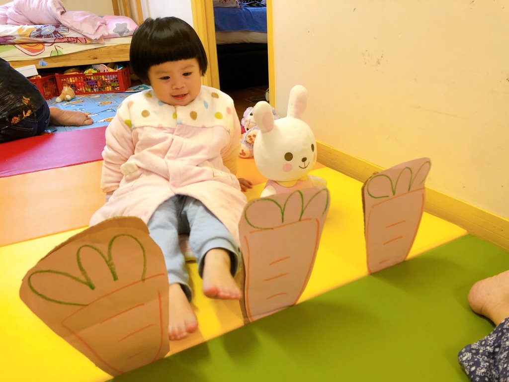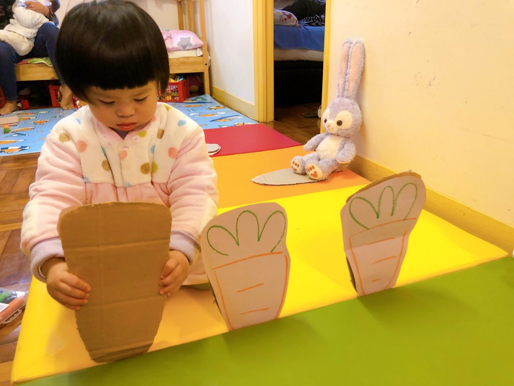 首先就係同佢地一齊閱讀下繪本《拔蘿蔔》,之後就同Elly一齊準備遊戲。