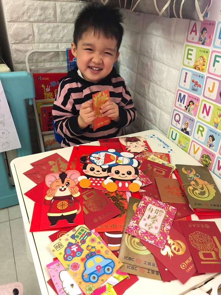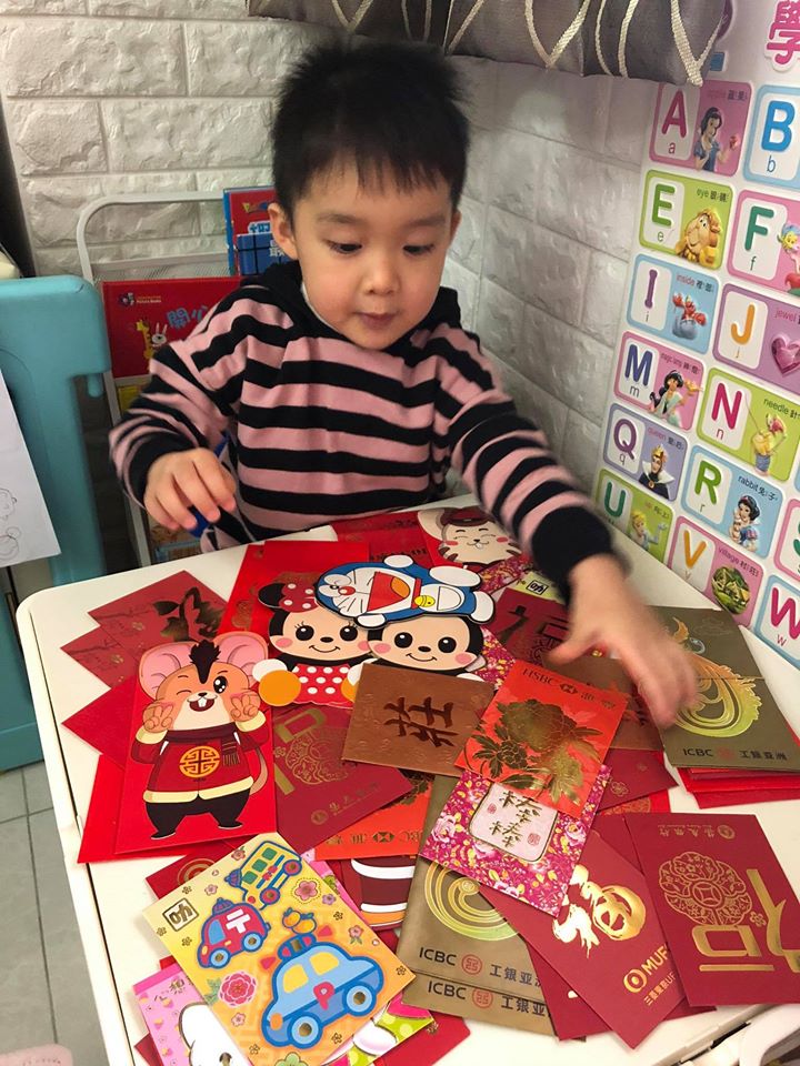 佢好享受拆利是的遊戲,因為覺得有好多唔同的玩法,仲叫我聽日俾佢再拆。