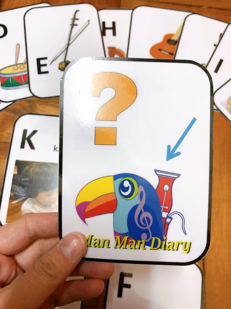 另外我附上一張特別卡,係想考下小朋友睇完字母卡之後,知唔知道Man Man Diary logo嘅大咀鳥孭住咩野樂器⋯⋯你看得到嗎?