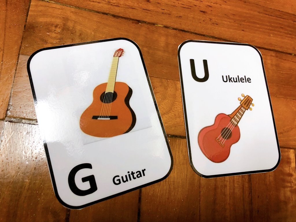 今次我自製嘅字母都係精選一啲常見樂器,家長仲可以考埋小朋友嘅觀察力。