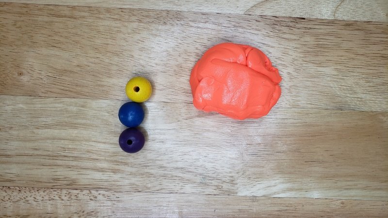 玩法:用前三指拿起積木,然後用力壓入練力膠中。之後可用練力膠覆蓋積木,要小朋友用手攤開練力膠找回