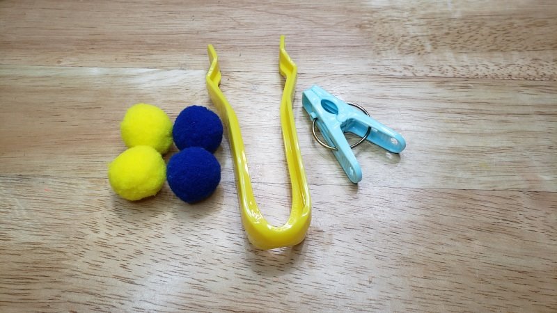玩法:先用鉗夾波波球,再試用夾夾波波球(若孩子不夠力可先試夾硬卡紙等較薄的東西)
