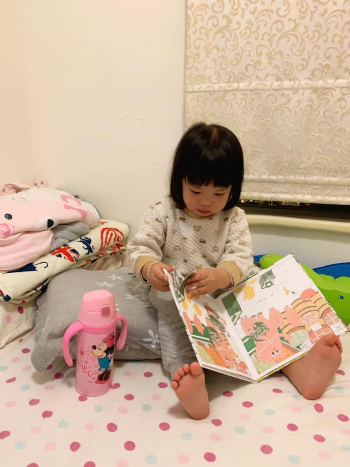 小朋友最享受就是與爸爸媽媽相處的時光,你跟佢看籃球他就喜歡籃球,你跟他看卡通他就喜歡看卡通,同樣地,你跟他閱讀他就會喜歡閱讀。每日定時閱讀,閱讀就成為孩子生活中的一部份,跟吃飯、吃小食、玩玩具一樣自然。每晚睡前講故事,小朋友會覺得閱讀原來就是跟爸爸媽媽的甜蜜時光。巧兒現在每晚先跟爸爸獨處閱讀,然後才到先媽媽的親子閱讀。看完書,媽媽會揹她去關燈、親一親,然後說 I love you,整段時間都很溫馨。孩子能夠帶著最好的心情入睡,同時也在建立有節奏的睡前規律。