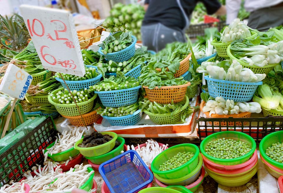 $15/3個西蘭花、$8/斤菜心、$8/斤 旺菜、$10/斤 本地菜芯苗、$8/份 翠玉瓜、$12/3個 紫洋蔥、$10/2份 竹蓆茅根、$13/3條 粟米、$10/2個 紅蘿蔔、$5/個 青蘿蔔、$10/2包四季豆、$6/份 南瓜、$6/份 薯仔、$10/個 紅菜頭