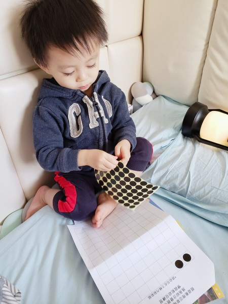 貼貼紙除了可訓練小手肌外, 仲可以令綿綿多動腦筋。