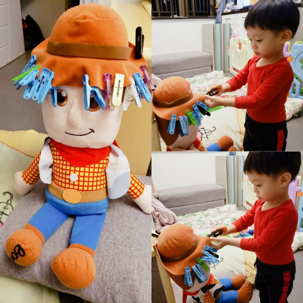 胡迪Woody 真係好夠義氣,為咗比綿綿鍛鍊手指肌肉,任意比佢夾,完全不怕影響自已形象,真係好大犧牲!雖然呢個畫面好殘忍,無諗過呢個學習方法都唔錯, 綿綿都幾有創意~