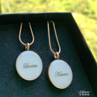 另一樣很想很想弄的母乳紀念品,就是母乳首飾。今次一併訂造了兩件,印上兩姊妹的名字。其實真的找了很久才找到這間讓我有 「bling」 一聲的感覺(好像選婚戒般嚴選呢!),結果即使是位於新加坡,logistics比較麻煩,還是選了PLM(Precious Lifetime Memories)。