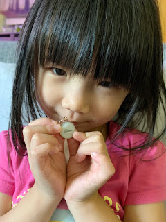 其後我和朋友再去TOQ燒玻璃,竟然誤打誤撞遇上店主新創造的冰乳琉璃,和母乳琉璃的風格不同,是單純的透明玻璃珠配滲入母乳的裂紋,用來造頸鏈、耳環、或戒指都很適合呢!