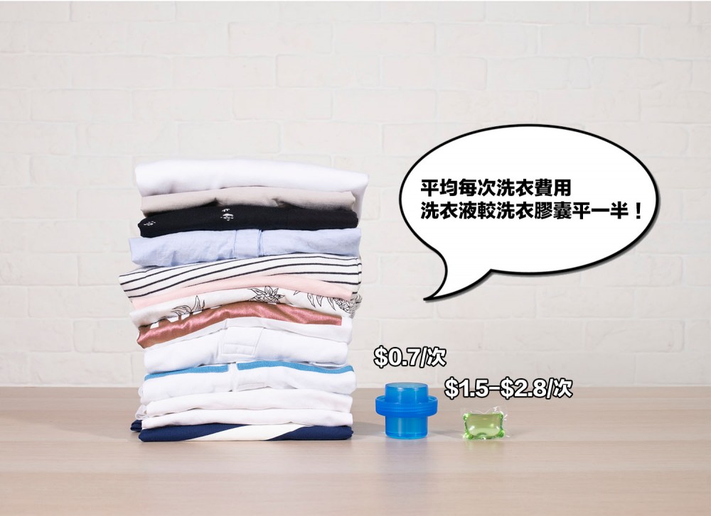 洗衣產品是消耗品,每次洗衣服成本當然愈低愈好。以每次清洗4至5公斤衣物計算,看看潔霸洗衣液跟洗衣膠囊對比: